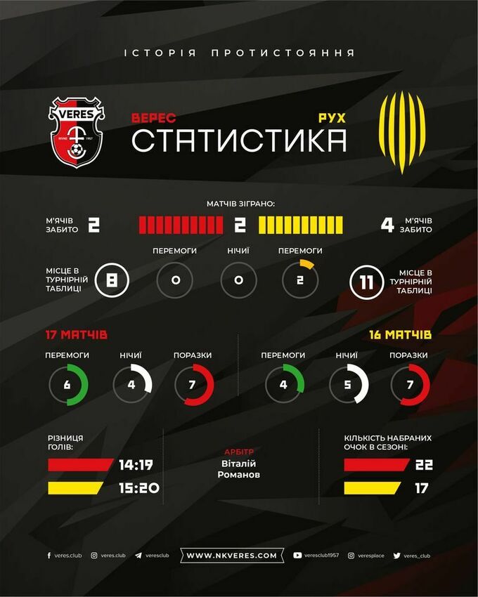 В субботу, 11-го декабря, состоится поединок 18-го тура Украинской Премьер-лиги, в котором сразятся ровенский «Верес» и львовский «Рух». Матч пройдет в Луцке, на поле стадиона «Авангард», начало в 17:00.
